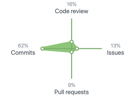 以前我 GitHub 这个雷达图几乎只有 commits 的,现在其他几个维度也有贡献了。