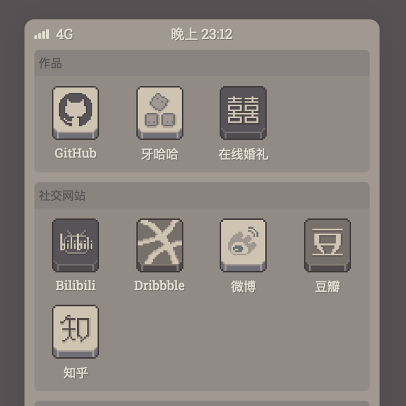 这是一个复古像素画风格的设计。技术难题其实去年都已经解决了,剩下的就是内容性的修改。这个坑填完之后,还会把博客的风格也改一下,并且整理一个个人作品页面。预计六月底搞定这几件事吧。