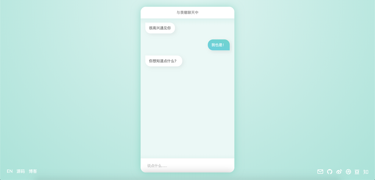 但是在当时,其实这样的产品并不是很多。而我之所以能想到这样子一个设计,主要是想要表达:在社交网络上,一个陌生人了解到的我,和我的微信好友,通过聊天了解到的我,这两者的差别,到底有多大呢?所以就想说,做一个个人网站,你可以通过聊天界面,就好像在和我交流一样。