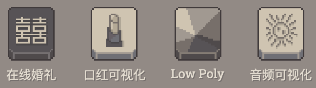 我花了两个月的时间,基本上实现了想要的效果,剩下的工作量主要就是画像素画和添加文本内容。而我实际之后又花了 8 个月的时间完成这一部分的工作——当然主要是由于拖延症的关系。直到前几天的某一个晚上,我想继续画几个应用图标,用了两个小时,画了 6 个。然后不知道怎么突然意识到好像差不多就完成剩下的工作了,于是又花了一个小时完善了一下,居然这就发布了……