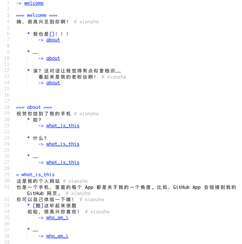 在今年的这一版中发现了一个很好用的工具叫做 Inky。他本来是用在叙事游戏中生成脚本的,但是对我的这个应用场景而言,恰好是可以使用的。