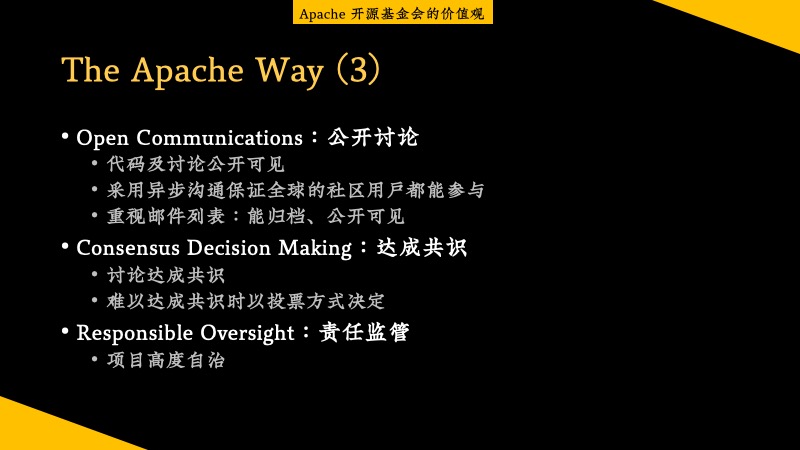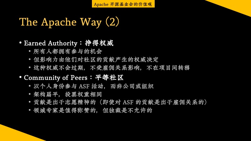 我们在提到 Apache 开源基金会的就是——The Apache Way。