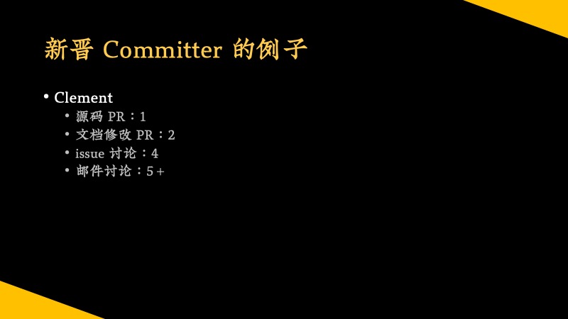 这里举两个新加入的 Committer 的例子,大家可以参考一下贡献度。